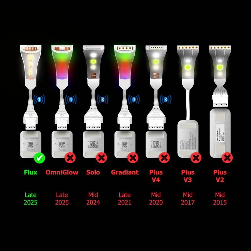 There are 7 versions of Philips Hue LightStrip, many with differing connectors. There are 3 revisions of Lightstrip Plus, there is Gradient Lightstrip, Solo Lightstrip and now both OmniGlow & Flux Strip Lights. Most versions have 2 different sized connectors, the Control Box socket and the LightStrip Extension connector, making 3 different cable combinations for each of the 7 versions. That’s 21 different cables, plus splitters.
